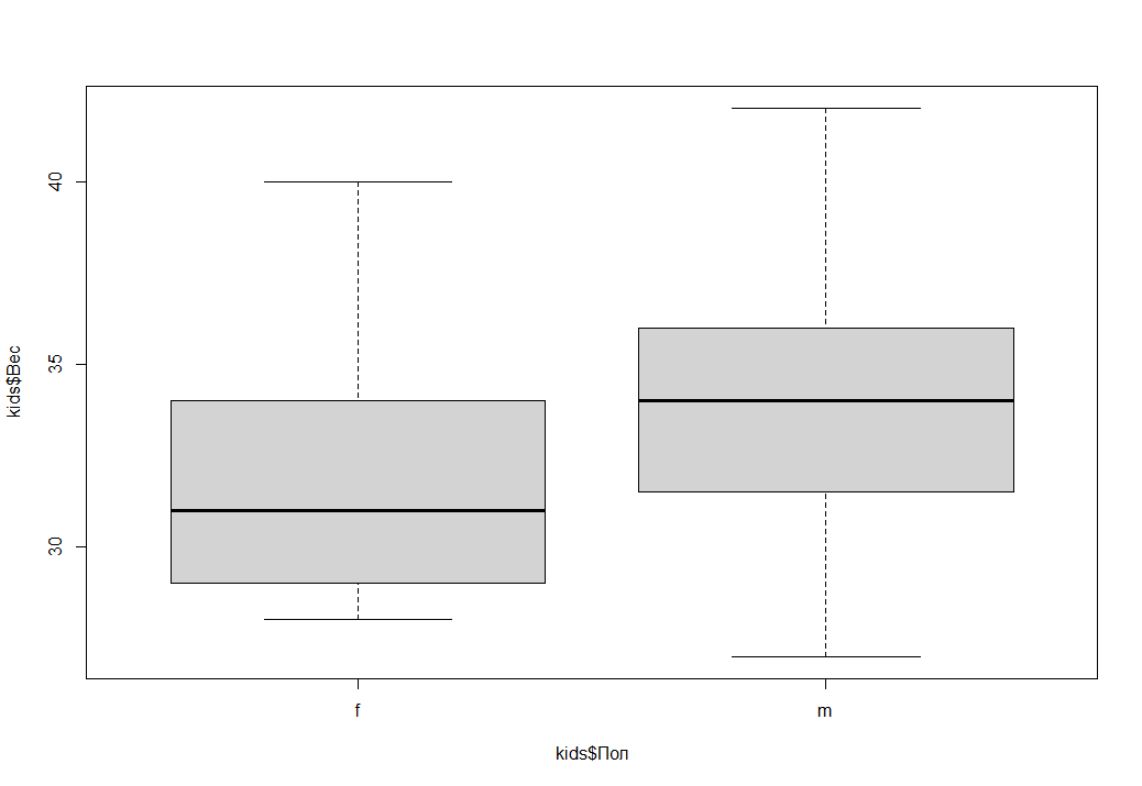 boxplot(kids$Вес ~ kids$Пол)
