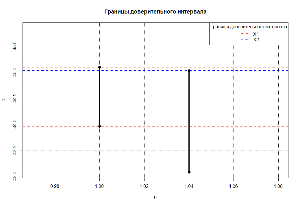 Теперь доверительные интервалы пересекаются а следовательно группы не имеют статистически значимых различий (то есть мы принимаем нулевую гипотезу о равенстве групп) что так же подтверждается и p-value = 0.40642 который значительно выше заданного порога уровня значимости 0.05.