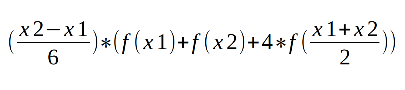 integer = integer + (dx/6)*(fx(x1) + 4*fx((2*x1+dx)/2)+