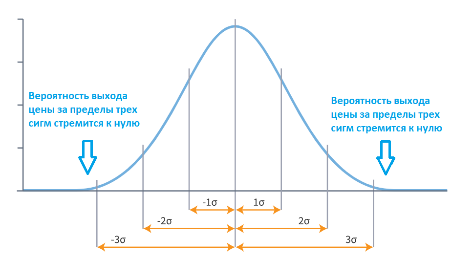 | 99,7% всех значений | лежат в пределе трёх сигм от математического ожидания |