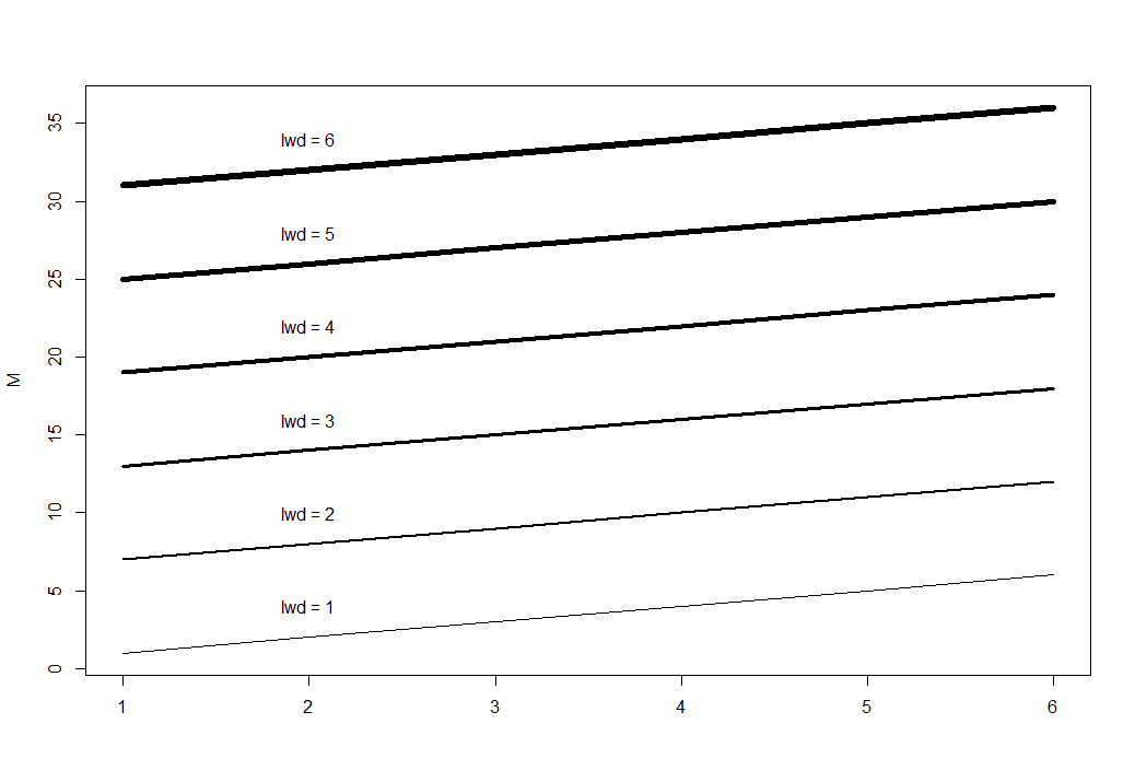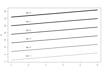 Ширина линии в R может быть изменена с lwdпомощью аргумента, где большие значения будут отображать более широкую линию.