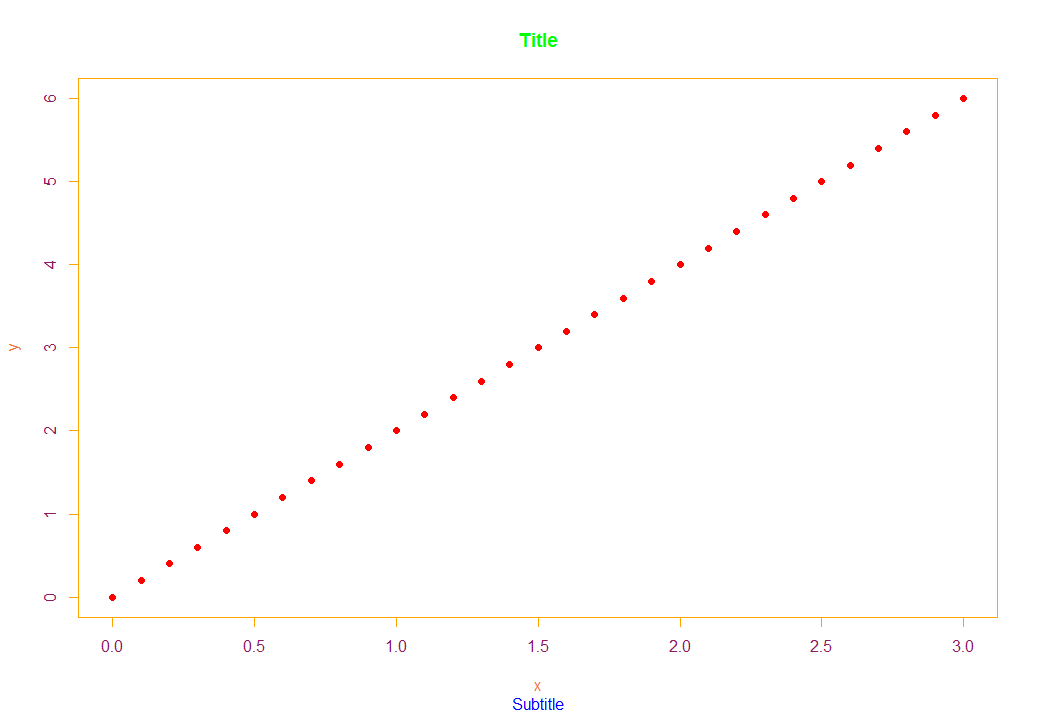 Вы также можете изменять цвета текста с col.main помощью функций , col.sub, col.lab и col.axis и даже изменять цвет поля с fg помощью аргумента.
