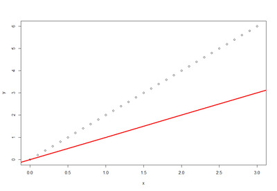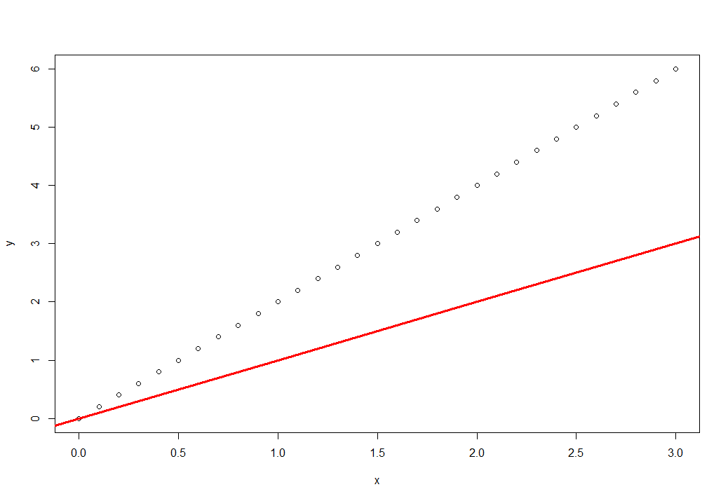 lines(-4:4, -4:4, lwd = 3, col = "red")