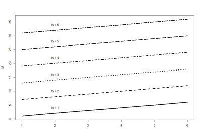 matplot(M, type = c("l"), lty = 1:6, col = "black", lwd = 3)