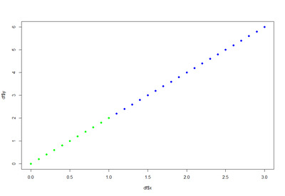 plot(df$x, df$y, col = colors[factor(group, levels = c("car", "boat", "plane"))],