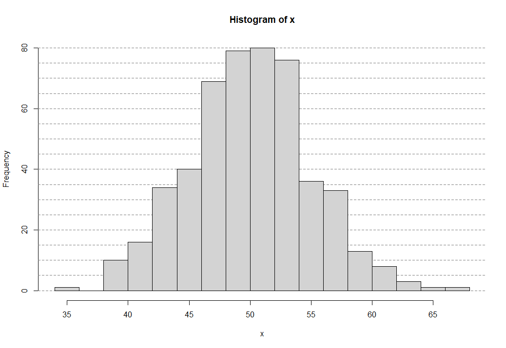 x = rnorm(500, 50, 5)