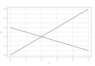 Пример 1. Построить два линейных графика и определить координаты их пересечения.