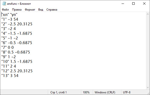 График абсолютно точно проходит через все точки данных - задача решена! И попробуем сохранить новые данные в файл